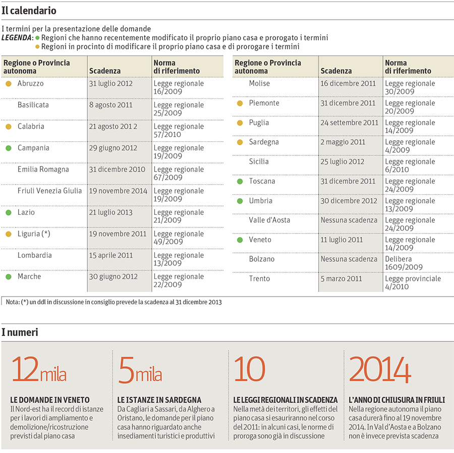 IL Calendario del Piano Casa secondo casa24.ilsole24ore.com